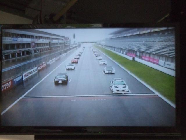 5RAP目クラッシュ車両が発生しTVモニターにセーフティーカーが投入と