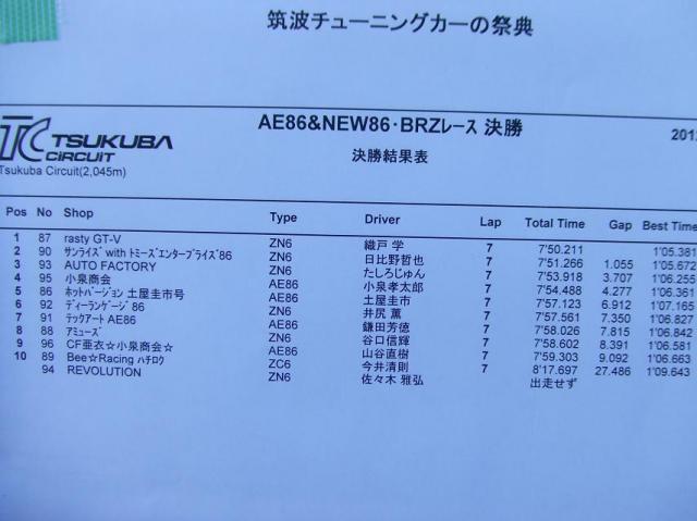 7周のバトルでした!AE86との対戦になり、やっと前へ出たがフラッグ!?でまたしても あと1周!!が欲しかったレースでした。